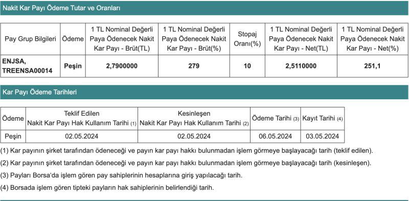 Enerjisa’nın hisselerine yatırım yapanlar için temettüden yararlanmanın şartı, 30 Nisan 2024 tarihli borsa seansının kapanışına kadar şirket hisselerine sahip olmak. Bu tarihten sonra hisse alımları, bu temettü dağıtım dönemi için geçerli olmayacak.